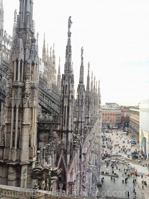 Subimos a las terrazas y se trata de una visita imprescindible, los balcones son una obra de arte y desde arriba puedes ver la ciudad y el movimiento de la plaza del Duomo.