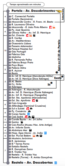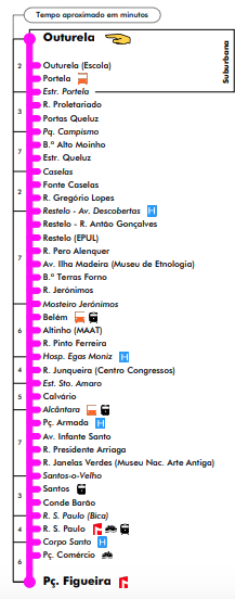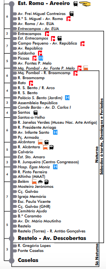 Este tranvia sale de la Praça da Figueira (cerca a Rossio), y pasa por  la Praça do Comercio y por Cais do Sodré. El trayecto dura entre 30 y 45 minutos.