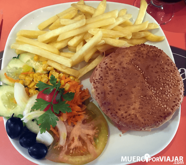 Precio: 19,70 € (Francesinha, hamburguesa, cerveza Abadia, Coca cola y café)