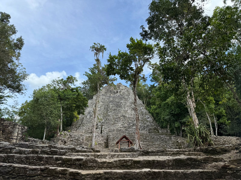 Cobá es una antigua ciudad maya ubicada en la selva del estado de Quintana Roo. Fue un importante centro político, económico y religioso sobre todo entre los siglos VI y X d.C. Destaca su pirámide Nohoch Mul, la más alta de la península de Yucatán, con 42 metros de altura. Antes se podía subir hasta la cima aunque desde el COVID no se permite y se debe disfrutar desde abajo.