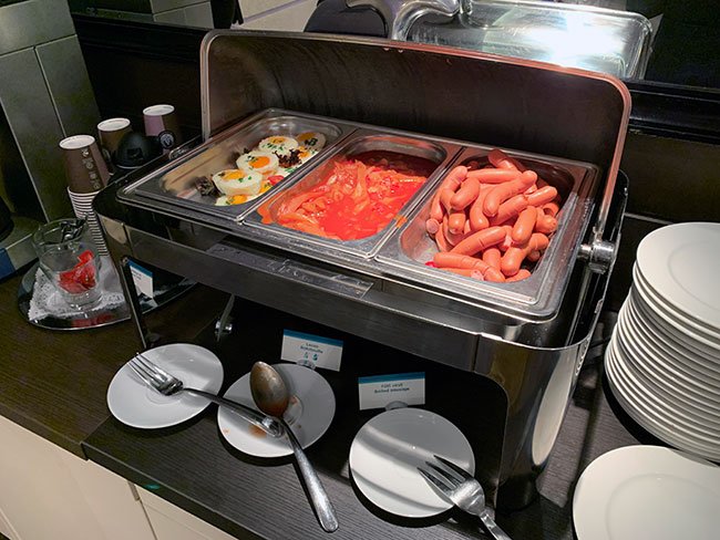 - El sábado, tras nuestra primera noche, el comedor donde se servía el desayuno estaba lleno, fuimos en hora punta, y tuvimos que compartir mesa, a pesar de ello pudimos comer de todo porque lo reponían muy pronto. El segundo día madrugamos más y no tuvimos ese problema.