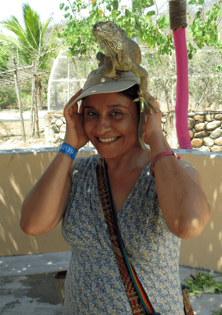 El lugar cuenta también con un criadero de iguanas y un lago con patos, estos animales realmente no son tan atractivos como las mariposas pero igual no nos resistimos a fotografiarnos con una iguana en la cabeza… Además, pueden comer y descansar bajo las palapas.