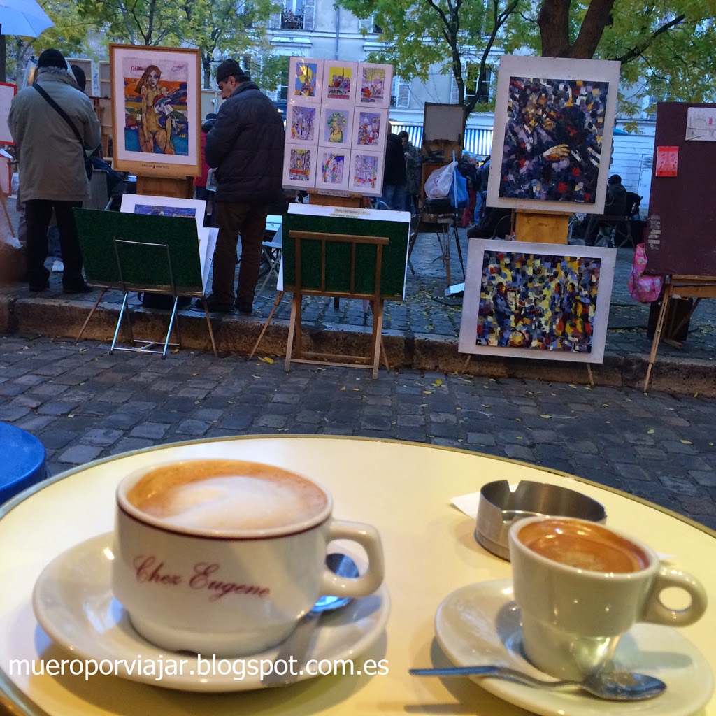 Estuvimos paseando alrededor de Sacre Coeur y tomamos un café en la Place du Tertre, fue caro (6€ cada café) pero era un muy parisino: terraza, artistas pintando,… fantástico!