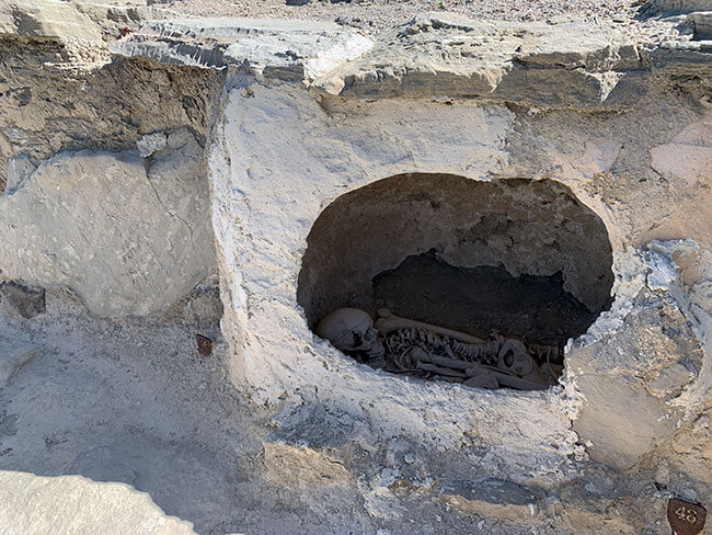 Otra de las características de esta cultura es el enterramiento en sepulturas individuales o familiares localizadas en la habitación (casa). Colocando a los cadáveres en posición flexionada y colocación de ofrendas juntos a estos, lo que reflejan creencias religiosas o en un “más allá”. Aquí es donde se encontró la momia que conoceríamos en el museo de la población.