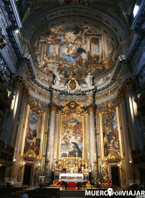 Se trata de una Iglesia barroca con mucha decoración y que se caracteriza por un fresco que tiene en la bóveda de la nave principal titulado “La Gloria de San Ignacio” tiene como cualidad que da la sensación de estar mirando una escena celestial desde abajo, todos los personajes están ejecutados con un realismo y profundidad increíble, incluso hay un espejo que permite mirarlo durante más tiempo sin dejarse el cuello.