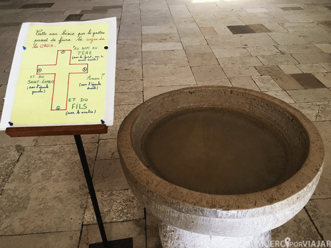 Sus casas de piedra tienen tejados rojizos preciosos, muchas de ellas son de los siglos XIII a XVI y sobre el pueblo destaca la iglesia. Ésta se puede visitar, es sencilla, y como curiosidad en la entrada tienes las instrucciones para persignarse.