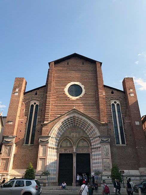 Su construcción se inició en el año 1290, aunque no se llegó a acabar. Es de mármol rojo y blanco de Verona y su estilo es gótico, se trata de la iglesia más grande de la ciudad.